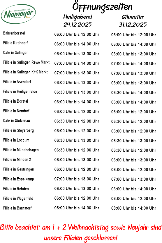 am 1.und 2. Weihnachtstag sind alle Filialen geschlossen